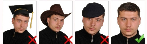 Kişinin zorunlu olarak kullandığı gözlük ve benzeri aksesuarlar dışında fotoğrafta şapka, başlık, pipo, vb. nesneler bulunmamalıdır.