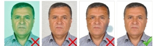 Bu nedenle, çektirmiş olduğunuz biyometrik fotoğrafların 35 mm x 45 mm ebadında kesilmemesi hususunun fotoğrafçılara muhakkak hatırlatılması gerekmektedir. |